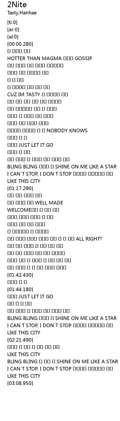| [02:37.680] | BLING BLING 빛 나는 너 SHINE ON ME LIKE A STAR |