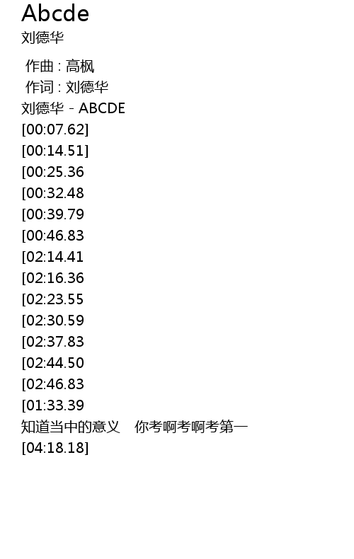 | [00:01.22] | liú dé huá ABCDE |