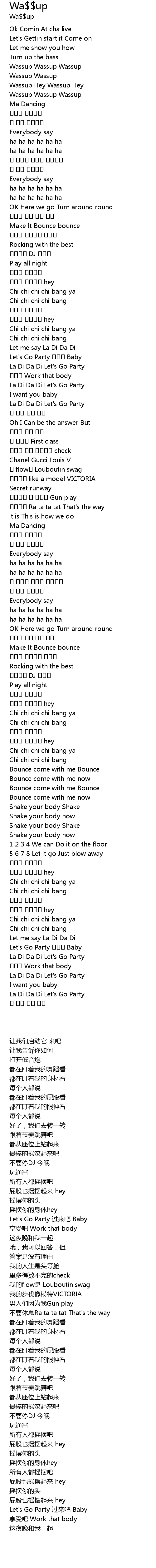| [00:12.38] | Wassup Hey Wassup Hey |