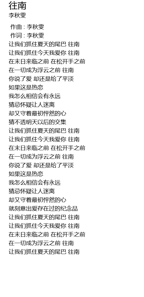 | [00:10.79] | 让我们抓住今天我爱你 往南 |