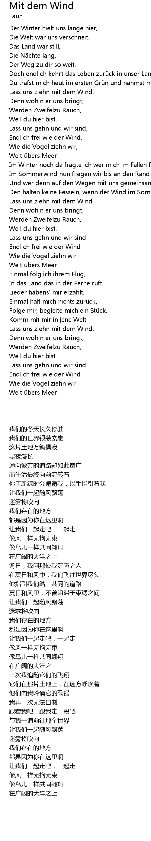 | 歌曲 | Mit dem Wind |