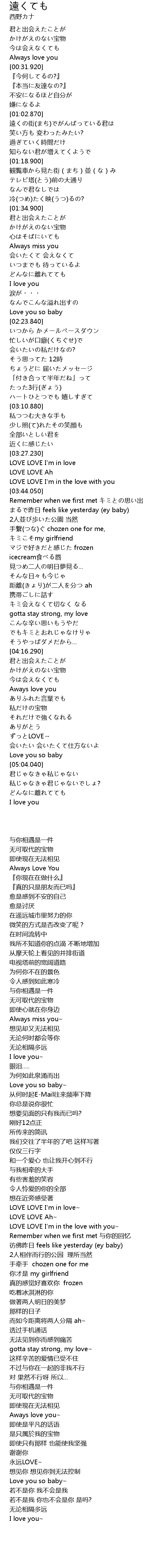 | [03:46.950] | 彷佛昨日 feels like yesterday (ey baby) |