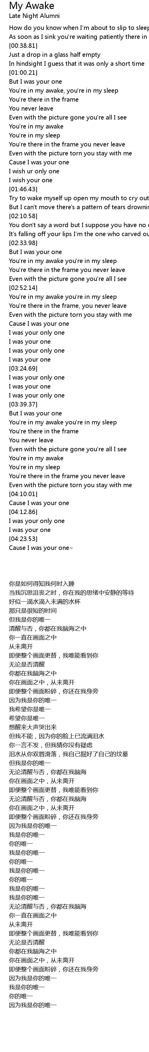 Cause I was your one~ |
