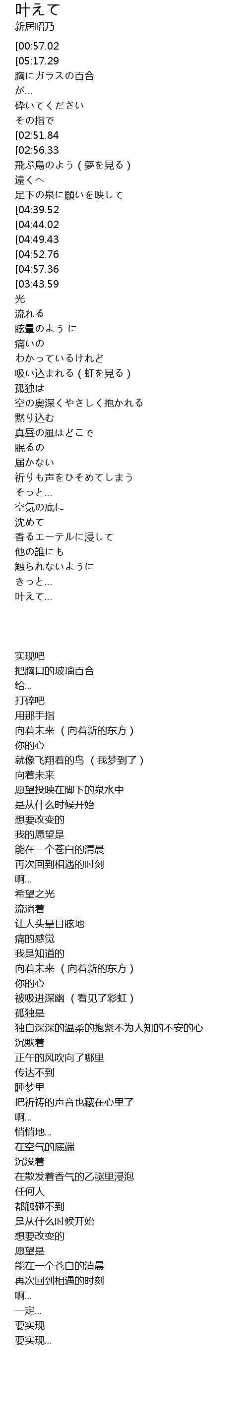 | [03:00.36] | 吸い込まれる(虹を見る) |