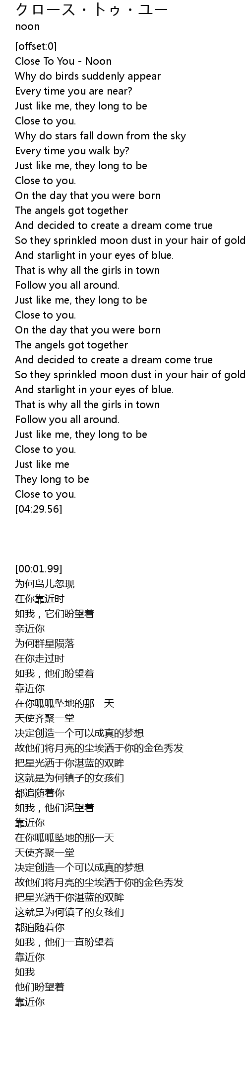 Close To You - Noon |