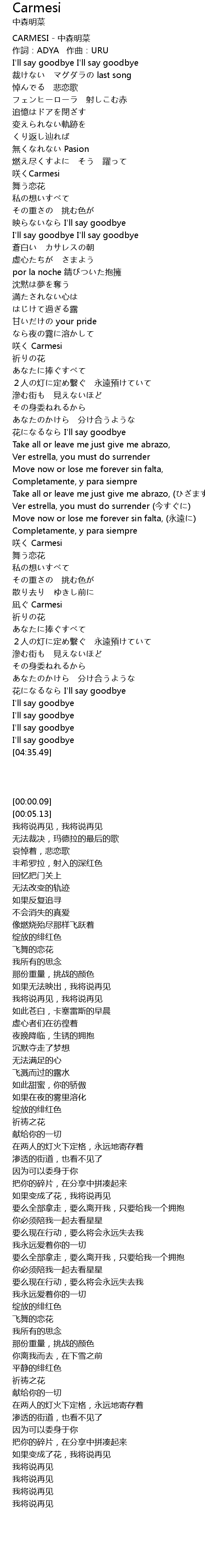 | [00:00.09] | CARMESI zhong sen ming cai |