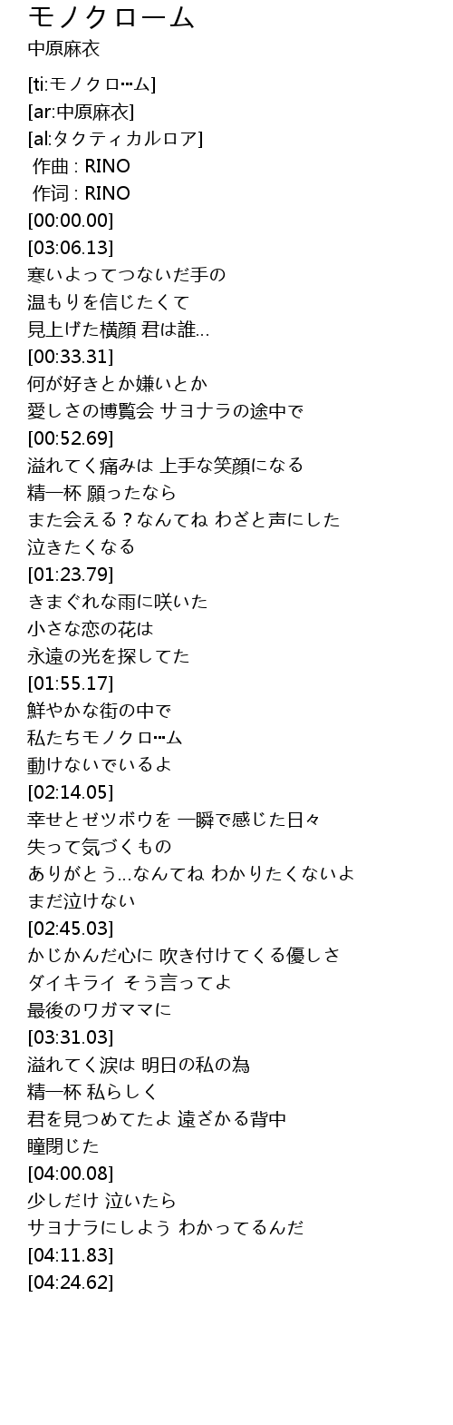| [00:00.00] | 作词 : RINO |