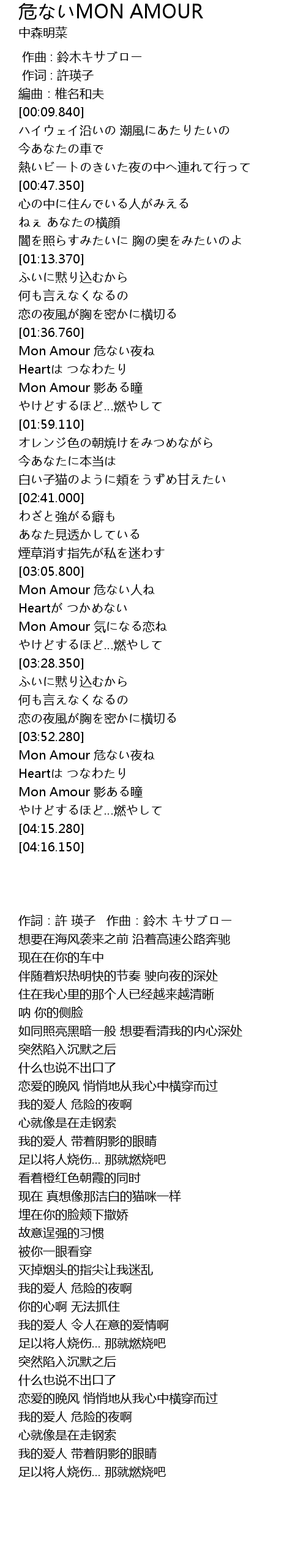 | [03:53.020] | Mon Amour 危ない夜ね |