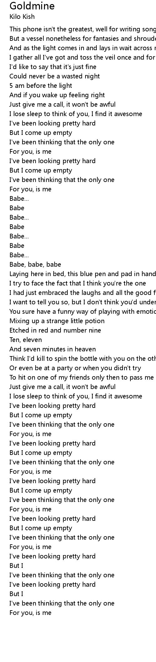 | [00:14.47] | This phone isn't the greatest, well for writing songs |