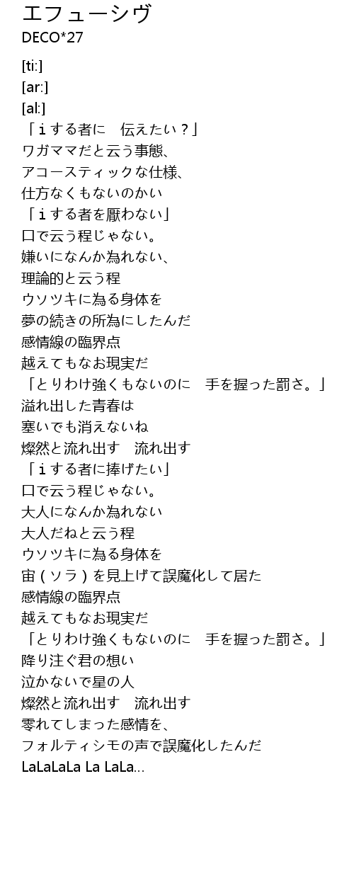 | [02:22.20] | LaLaLaLa La LaLa… |