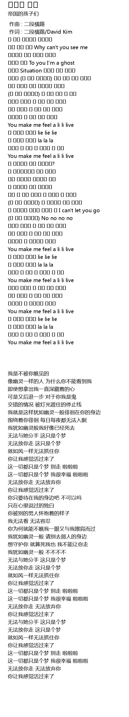 | [00:50.170] | (난 마치 유령처럼) 난 이미 죽은 것 같애 |