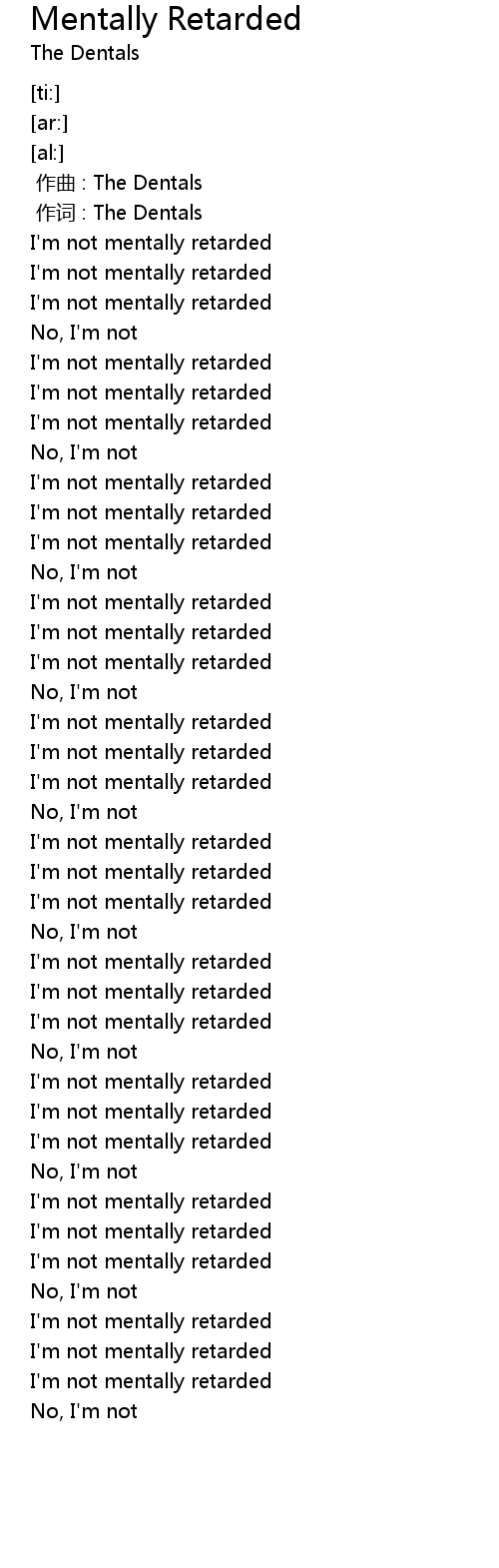 | [00:59.94] | I' m not mentally retarded |