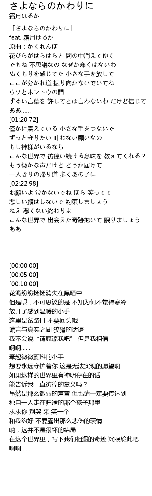 | [00:00.00] | 「さよならのかわりに」 |