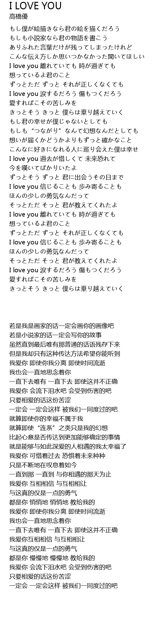| [02:56.000] | I love you 信じることも 歩み寄ることも |