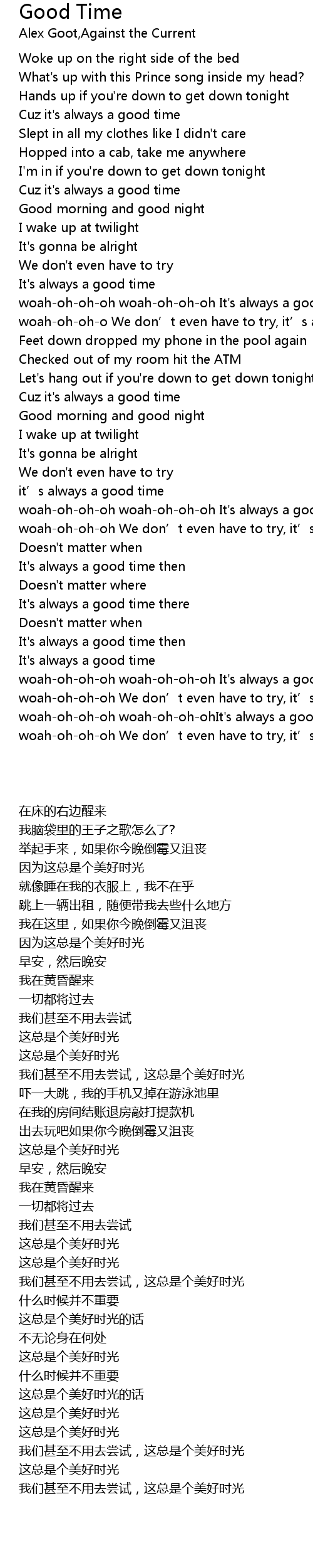 | [02:13.91] | woah-oh-oh-oh woah-oh-oh-oh It's always a good time |
