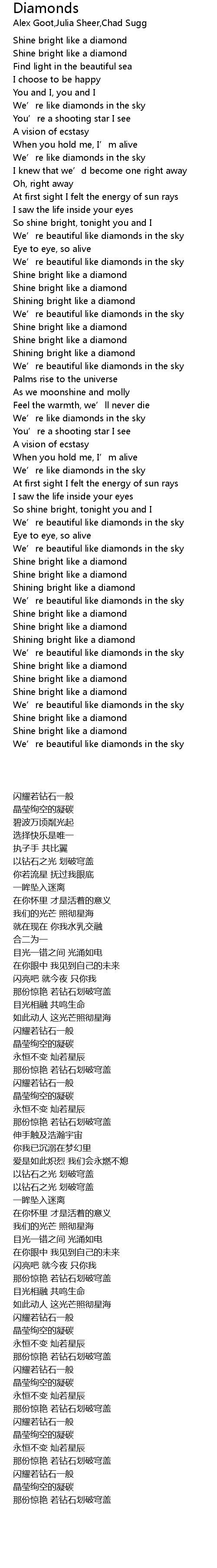 | [02:33.19] | Shining bright like a diamond |