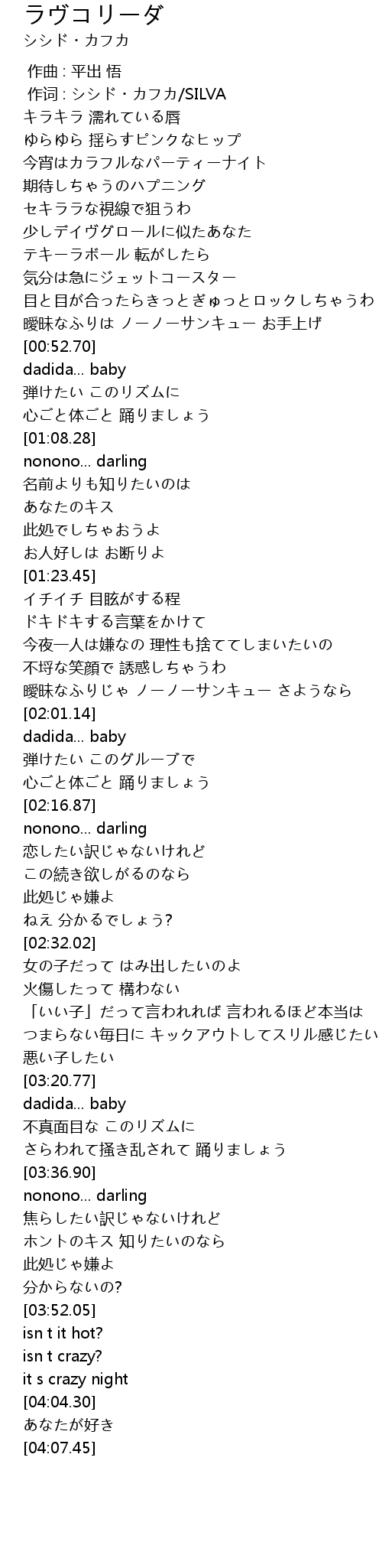 | [00:01.00] | 作词 : シシド・カフカ/SILVA |