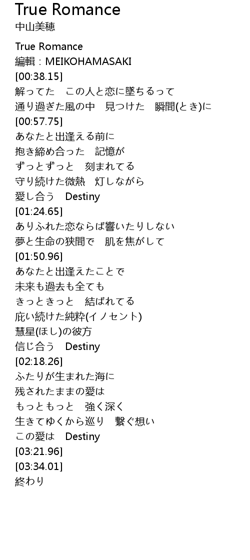 | [00:00.00] | True Romance |