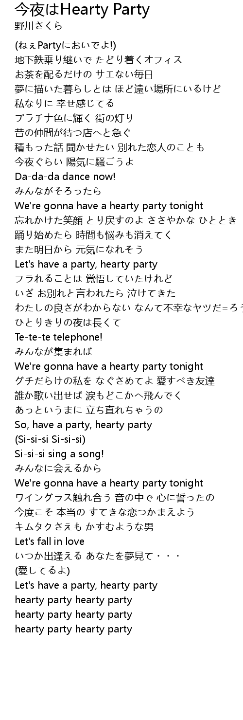 | Let's have a party, hearty party | |