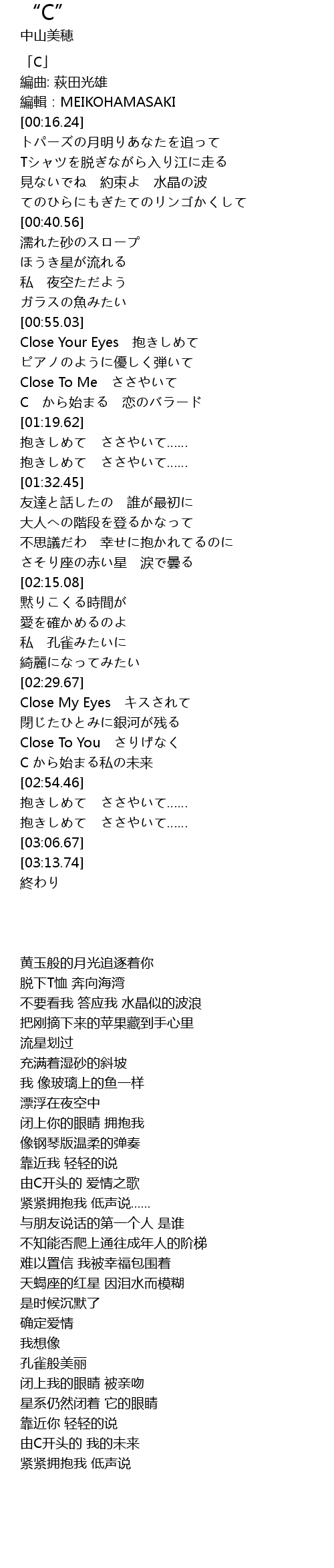 | [00:14.15] | 編輯:MEIKOHAMASAKI |