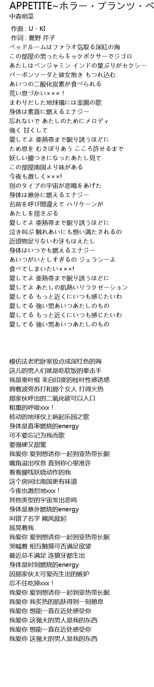 APPETITE~ホラー・プランツ・ベンジャミン 歌词