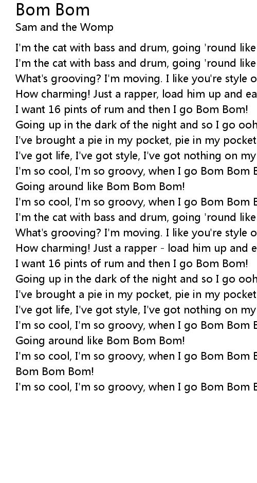 I'm the cat with bass and drum, going 'round like Bom Bom Bom!
