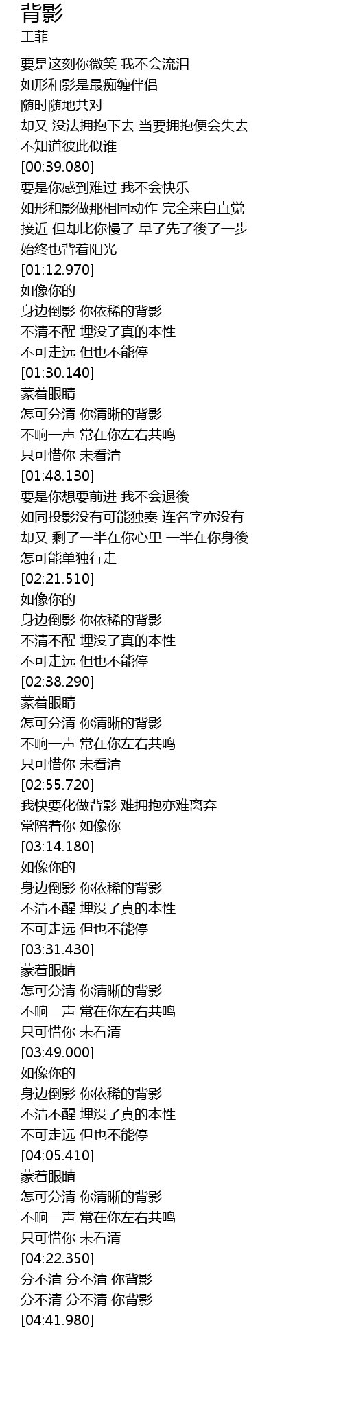 | [04:32.120] | fēn bù qīng fēn bù qīng nǐ bèi yǐng |