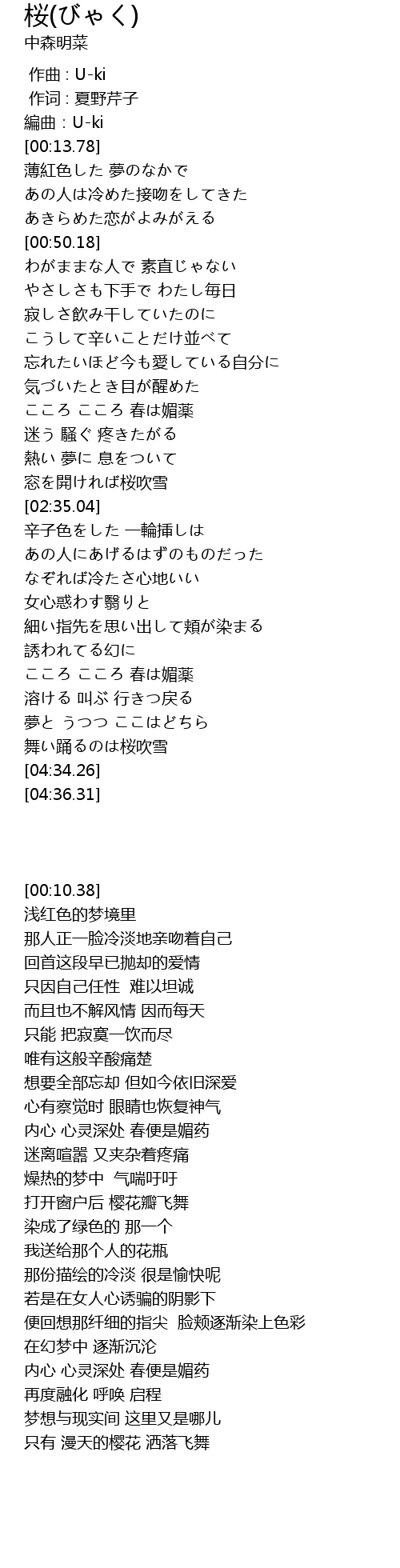 | [00:10.38] | 編曲:U-ki |