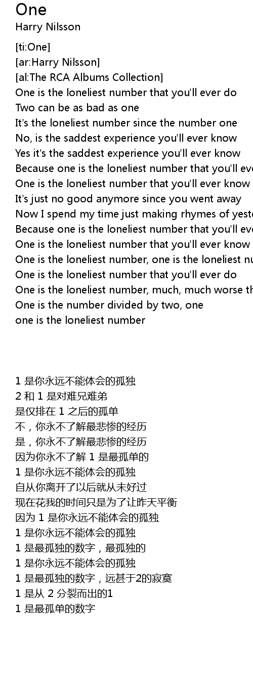 One is the loneliest number, one is the loneliest number |