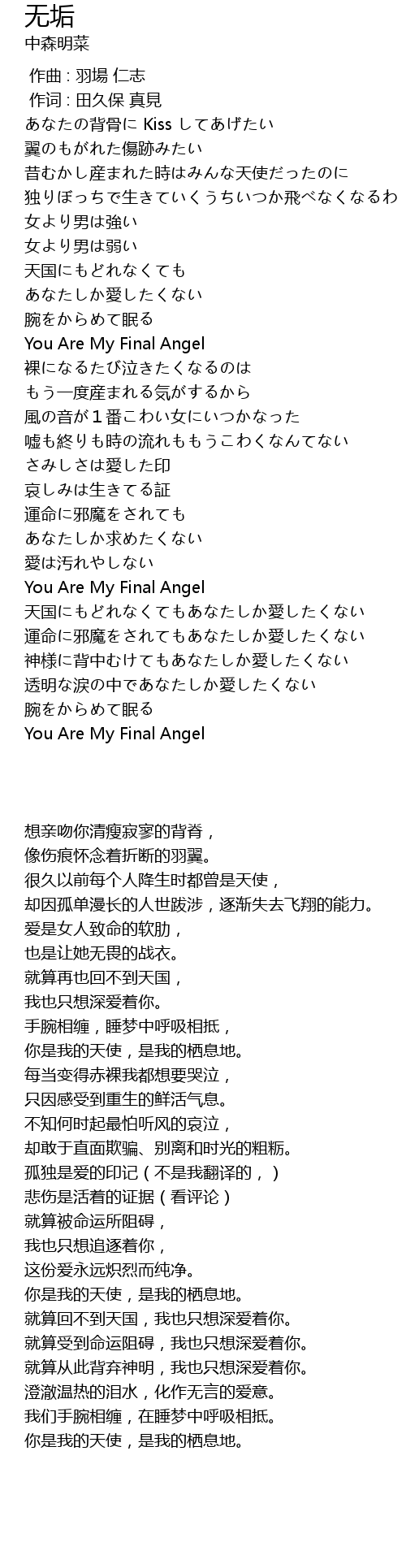 | [02:31.58] | 你是我的天使,是我的栖息地。 |