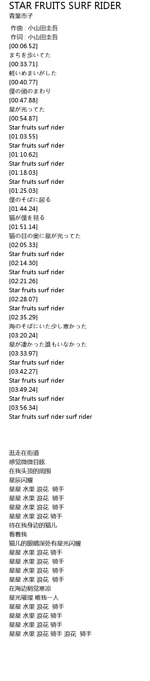 | [02:22.60] | 星星 水果 浪花 骑手 |