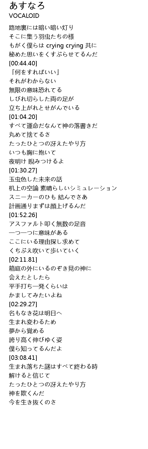 | [00:36.09] | もがく僕らは crying crying 共に |