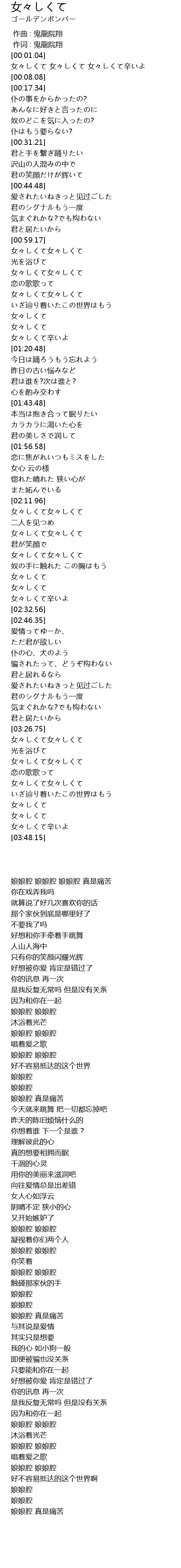 | [00:01.20] | 女々しくて 女々しくて 女々しくて辛いよ |