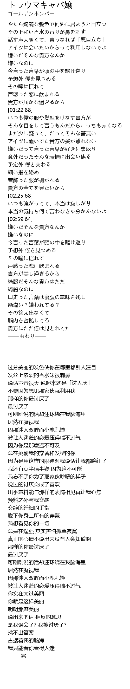 | [00:37.42] | その上強い香水の香りが鼻を刺す |