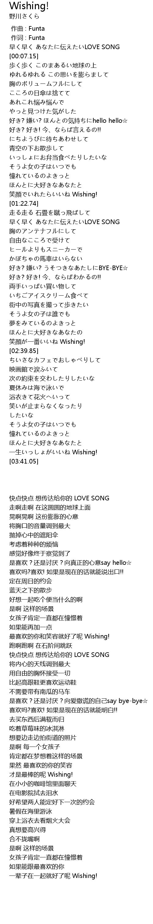 | 歌曲 | Wishing! |