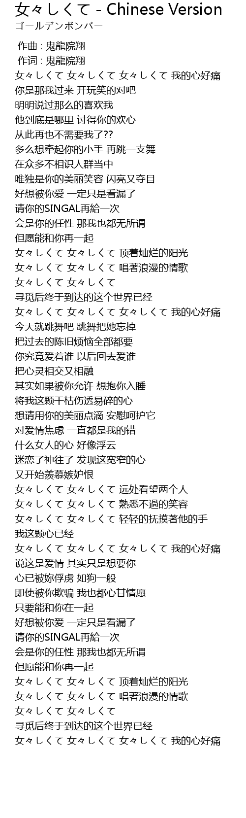 | 歌曲 | 女々しくて - Chinese Version |