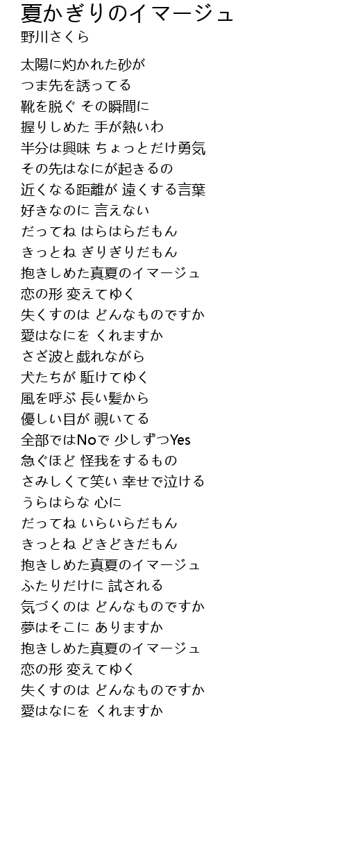 | 歌曲 | 夏かぎりのイマージュ |