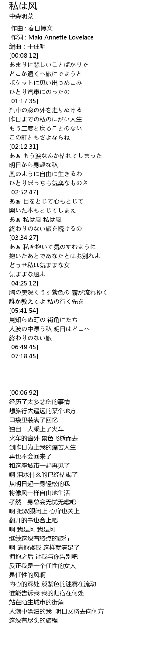 | [03:10.54] | あぁ 私は風 私は風 |