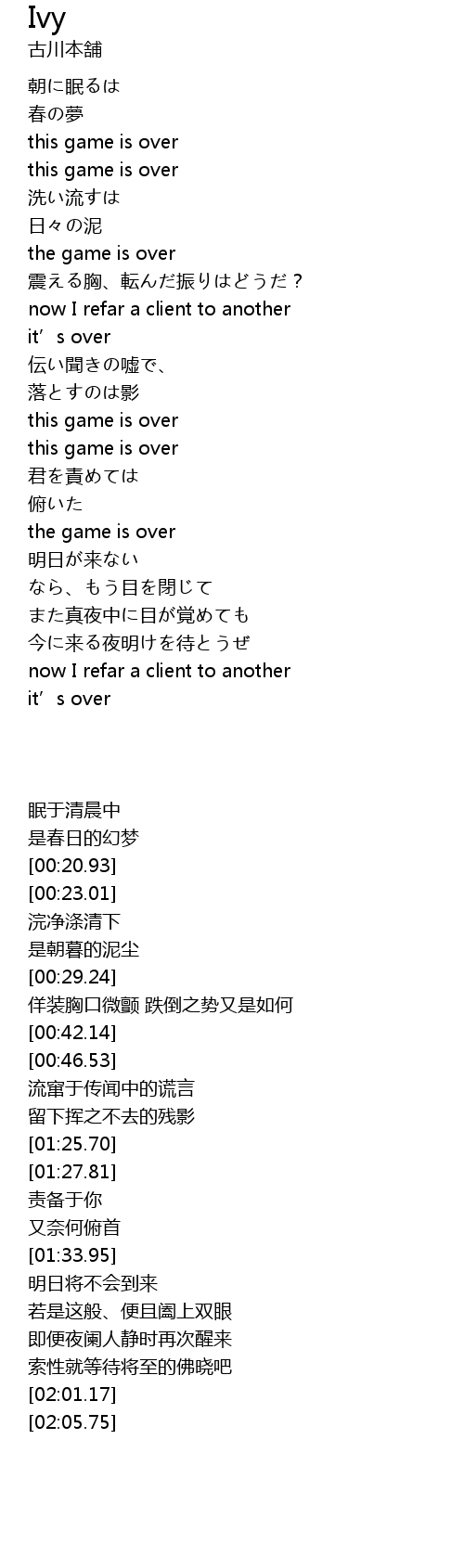 | [01:54.61] | 索性就等待将至的佛晓吧 |