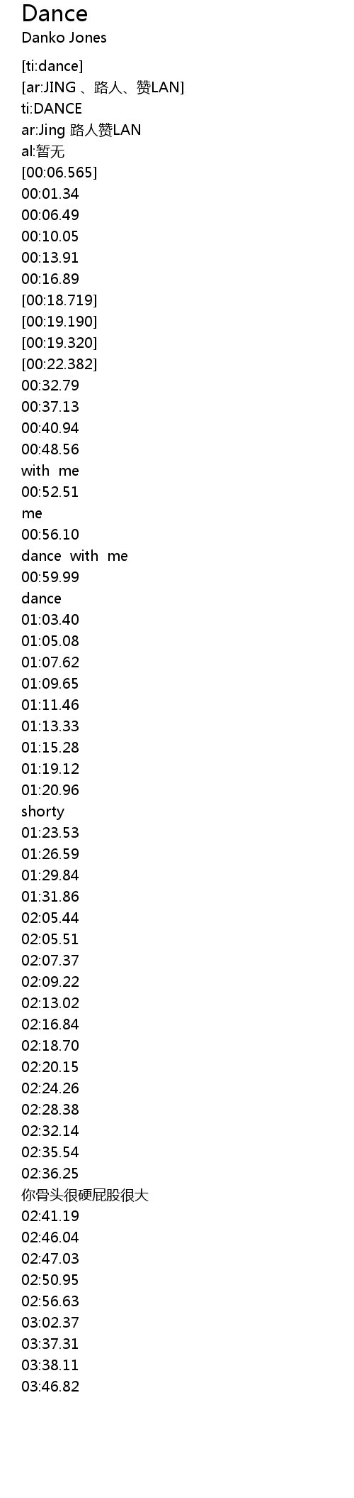 | [00:06.983]00:01.34] | gē míng: DANCE |