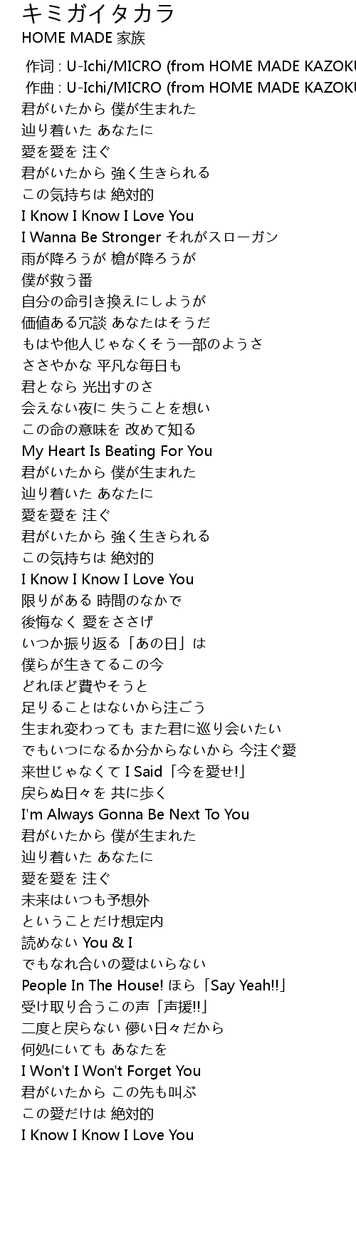 | [00:00.000] | 作词 : U-Ichi/MICRO (from HOME MADE KAZOKU)/Kuro |
