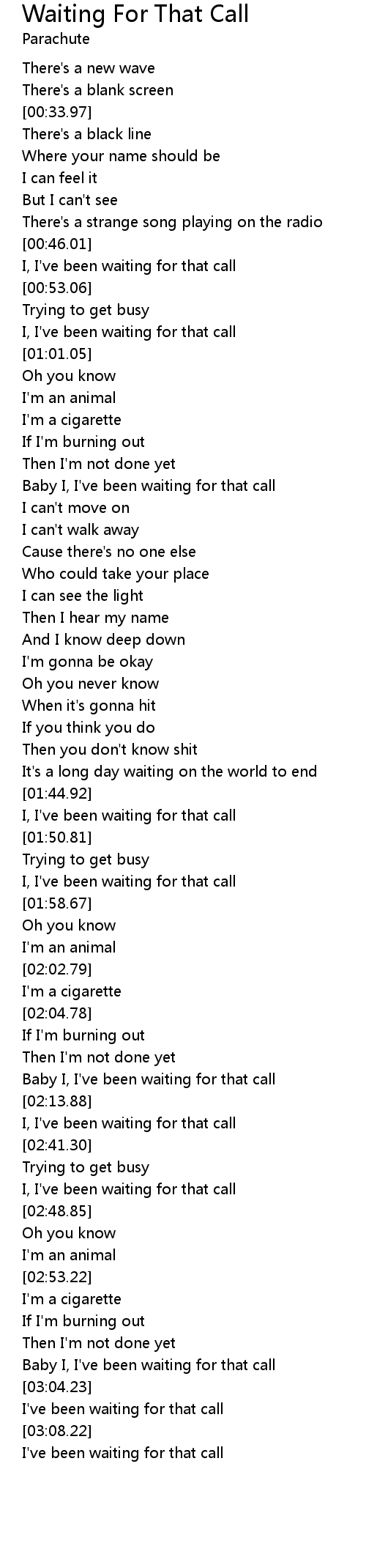 | [00:48.63] | I, I've been waiting for that call |