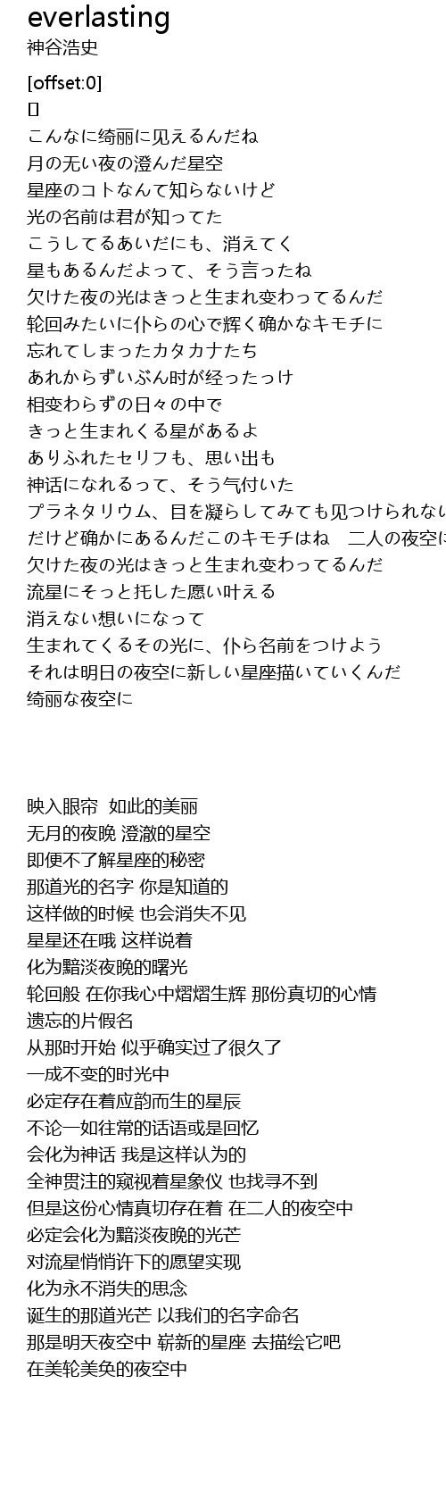 | [02:55.358] | 对流星悄悄许下的愿望实现 |