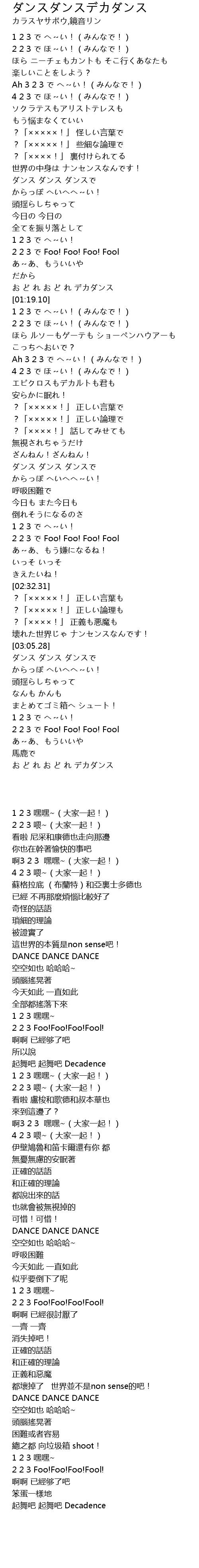 | [02:19.74] | 2 2 3 で Foo! Foo! Foo! Fool |