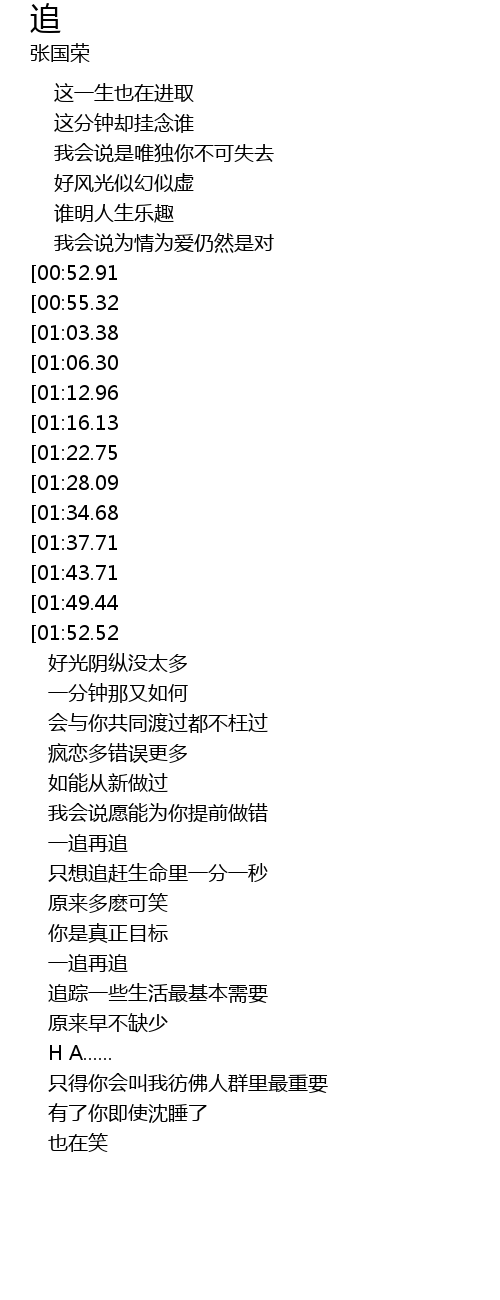 | [02:46.98][01:12.96] | 一追再追 |