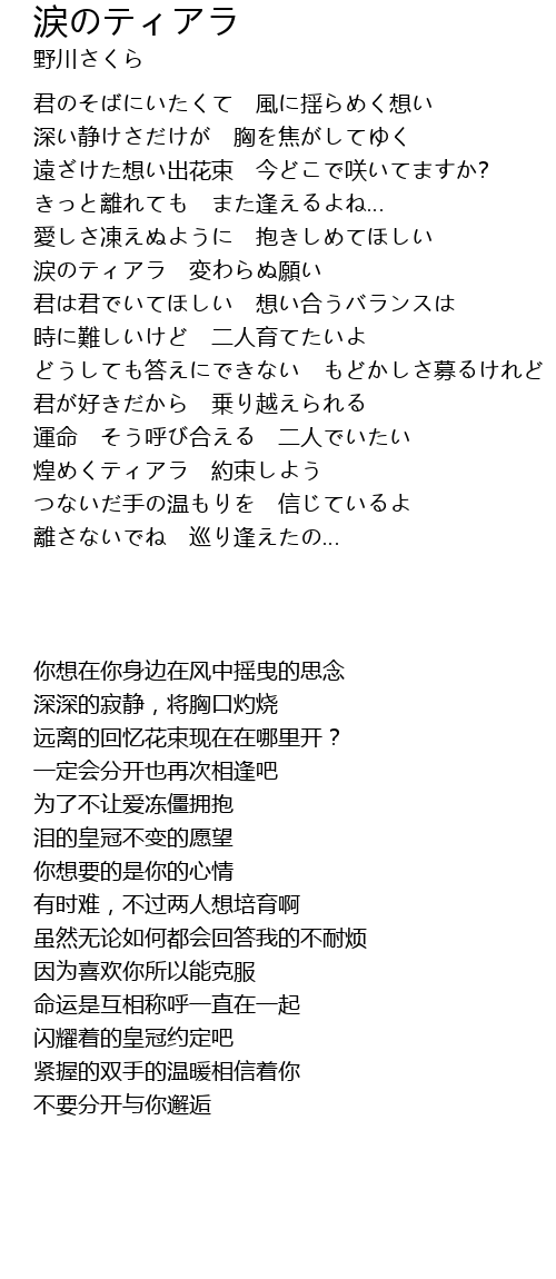 | [01:24.50] | 涙のティアラ 変わらぬ願い |