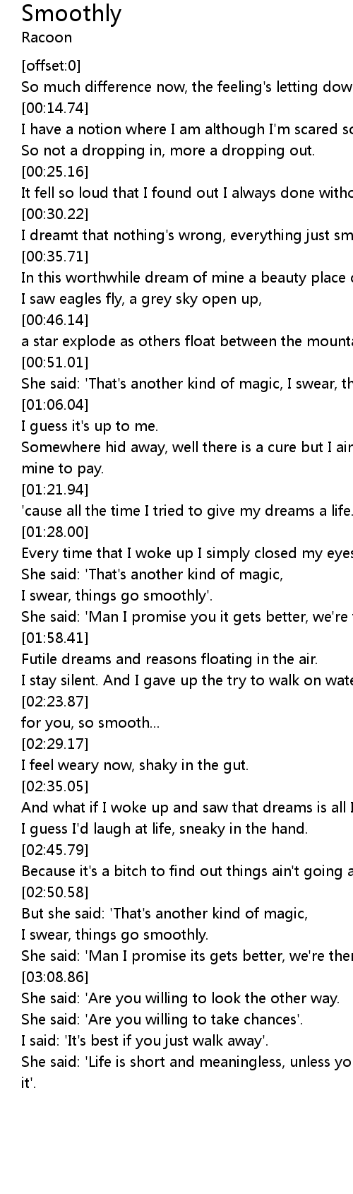 [00:51.57] She said: 'That's another kind of magic, I swear, things go smoothly'.