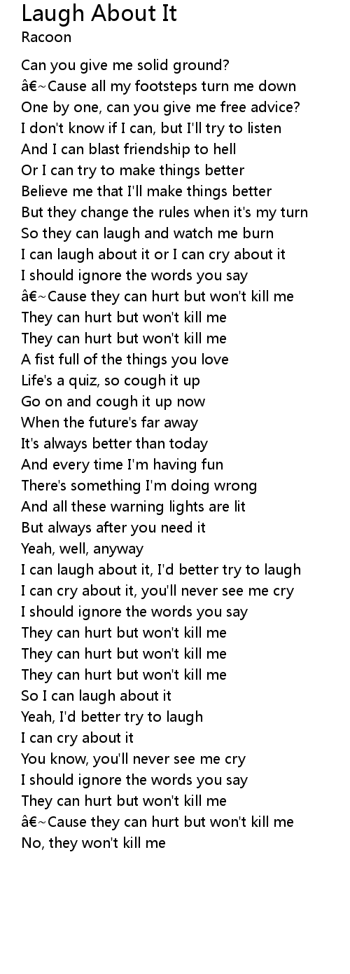 | I can laugh about it, I'd better try to laugh | |