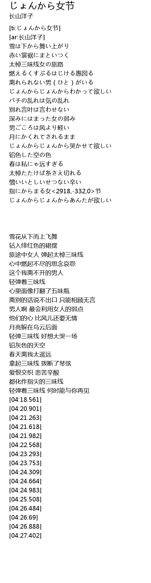 | [01:01.954] | 旅途中女人 弹起太棹三味线 |