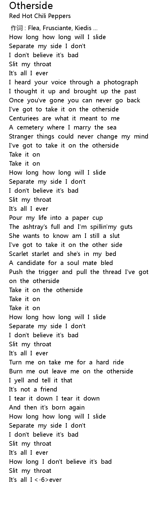 | [00:00.00] | 作词 : Flea, Frusciante, Kiedis ... |